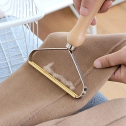 El borde metálico recoge eficazmente bolitas, pelos y fibras sueltas, dejando la tela lisa y cuidada.