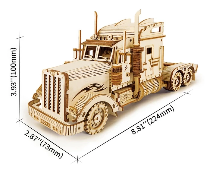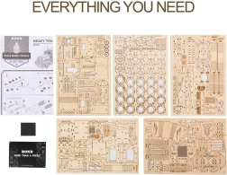 Este modelo de camión, detallado y minucioso, es un excelente ejemplo de fabricación artesanal de precisión. Hecho con piezas cortadas con láser de contrachapado de tilo de 2 mm, que se desprenden fácilmente de la base. Su propósito es desarrollar tu pensamiento técnico, imaginación y motricidad fina.