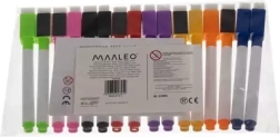 Práctico juego de rotuladores para pizarra blanca con imán y mini borrador en el tapón para correcciones rápidas. El paquete incluye 16 unidades en 8 colores llamativos (2 de cada). Ideal para la escuela, la oficina y el hogar. Los rotuladores escriben con suavidad, se borran fácilmente y se adhieren a pizarras magnéticas. 8 colores, imán en el tapón, borrador integrado, uso universal.