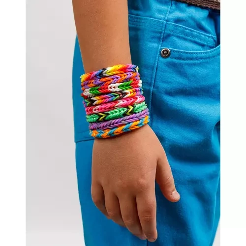 El set incluye 1500 gomas en 23 colores preciosos que estimulan la imaginación y la creatividad.