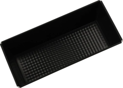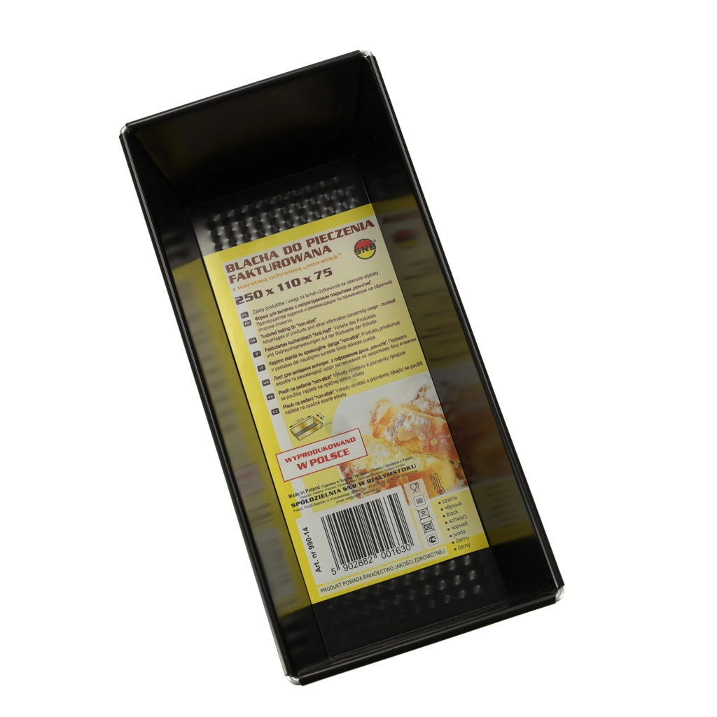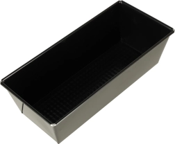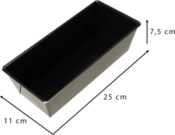 Práctico molde para pan y bizcocho inglés de 25 × 11 × 7,5 cm, fabricado en acero de bajo contenido en carbono con revestimiento antiadherente y fondo texturizado para un desmoldado fácil y una cocción uniforme. Apto para hornos de gas y eléctricos, ideal para el horneado diario.
