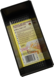 Este molde rectangular negro está hecho de acero de bajo contenido en carbono con un duradero revestimiento antiadherente. Las paredes lisas y el fondo texturizado garantizan una excelente distribución del calor y un desmoldado fácil sin que se pegue. Las esquinas reforzadas con alambre ayudan a mantener la forma incluso con uso frecuente.