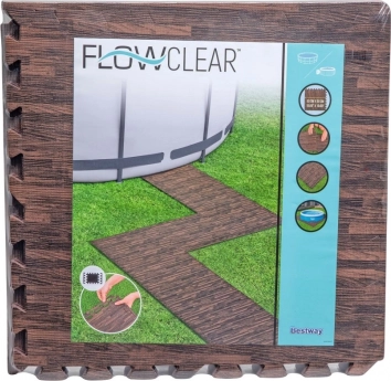 Crea el lugar ideal para tu piscina con las alfombrillas de espuma BESTWAY. Estas alfombrillas con diseño de madera proporcionan una superficie suave y protectora que protege no solo la parte inferior de la piscina, sino también tu césped de posibles daños. Gracias a la fácil unión entre piezas, puedes montarlas según necesites para lograr la forma y el tamaño deseados.