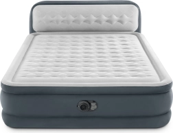 Colchón inflable de doble pared INTEX con tecnología Dura-Beam Fiber-Tech, que ofrece gran superficie de descanso, cabecero integrado y bomba eléctrica incorporada para un inflado y desinflado rápidos. Altura desde el suelo de 46 cm y superficie de terciopelo suave que garantizan comodidad, estabilidad y un aspecto limpio. Capacidad máxima de 272 kg para un descanso fiable para dos personas.
