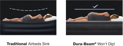Disfruta del confort de un colchón inflable firme y cómodo, ideal para invitados o vacaciones. Gracias a la tecnología Fiber-Tech con fibras de poliéster, el colchón ofrece mayor rigidez, una vida útil más larga y distribuye el peso de forma uniforme por toda la superficie. La superficie ondulada y la construcción por cámaras ayudan a mantener la posición correcta de la columna y reducen el riesgo de dolores de espalda y cervicales.