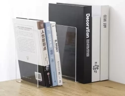 El acrílico cristalino realza los libros, ofrece un aspecto limpio y no interfiere con el diseño de la estantería o el escritorio.