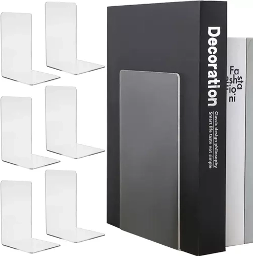 Mantén los libros y colecciones ordenados en su sitio con prácticos sujetalibros de plexiglás. El juego incluye 6 piezas de acrílico resistente de 3 mm de grosor, que son transparentes y casi invisibles, por lo que no alteran el aspecto de la estantería. Gracias a su estable construcción en L y a los bordes cuidadosamente pulidos, mantienen los libros firmes sin volcarse ni deformarse. Cada pieza está protegida para el transporte con una lámina protectora.