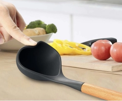 Enriquece tu cocina con nuestro juego de utensilios de cocina de silicona. Este set es ideal para cocinar con seguridad en superficies de teflón u otras antiadherentes. La silicona resiste altas temperaturas de hasta 230 grados y no dañará la superficie de tus sartenes y ollas.