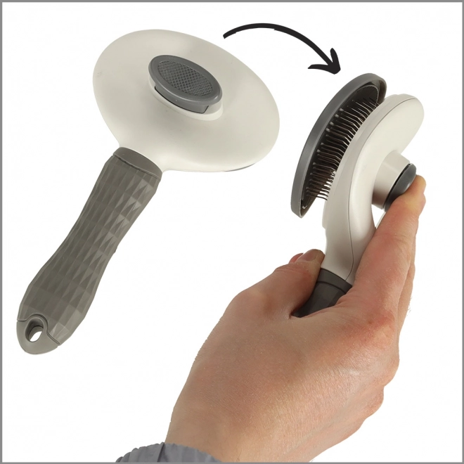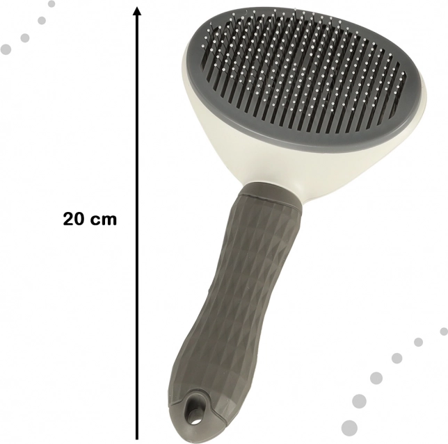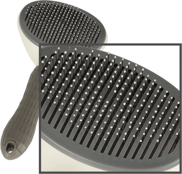 Al cepillar a tu mascota con regularidad, no solo mantienes tu hogar más limpio, sino que también cuidas la salud del pelaje y la piel. El cepillo deja el pelaje suave y brillante gracias a la distribución natural de los aceites a lo largo de todo el pelo. El mecanismo autolimpiante garantiza que, después del cepillado, no tengas que retirar el pelo de forma complicada. Solo presiona el botón y el pelo se desprende fácilmente del cepillo.