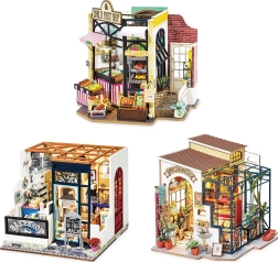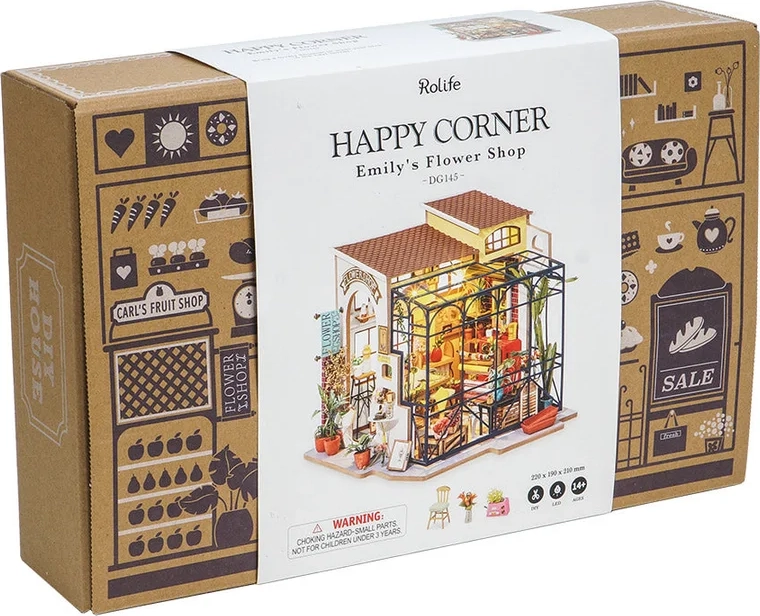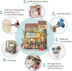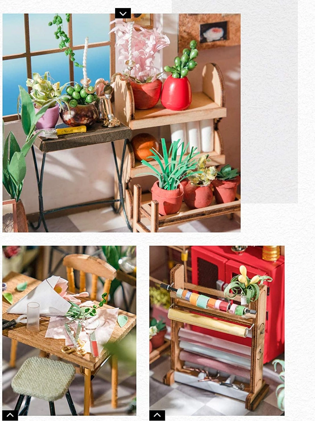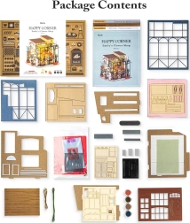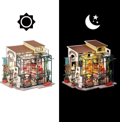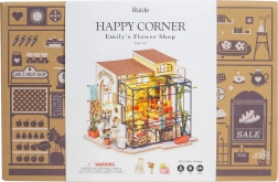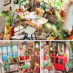 Crea tu propia y pintoresca floristería con invernadero adjunto y multitud de plantas, estantes y accesorios tallados. El kit incluye piezas precortadas de contrachapado, elementos de papel y tela y un juego de herramientas, con los que obtendrás un modelo realista con el rótulo “Flower Shop” y parte acristalada transparente. Una vez montado, servirá como una decoración elegante para tu interior.