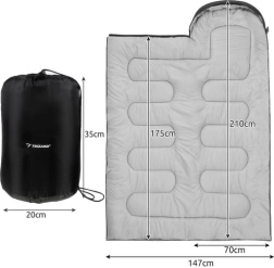 El saco de dormir turístico 2 en 1 Trizand está diseñado para ofrecer la máxima comodidad y calidez durante tus actividades al aire libre. Puedes abrirlo y usarlo como una amplia manta o permanecer envuelto en su acogedor saco tipo momia. Gracias al aislamiento Hollow Fiber, garantiza un aislamiento térmico fiable y mantiene el calor generado por tu cuerpo dentro del saco.