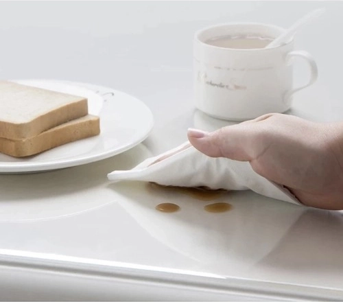 Esta alfombrilla protectora está fabricada con PVC de calidad de 1 mm de grosor, que no se enturbia, no amarillea y no se agrieta. Es elástica, resistente al agua y muy duradera, lo que garantiza una protección prolongada para tus mesas.