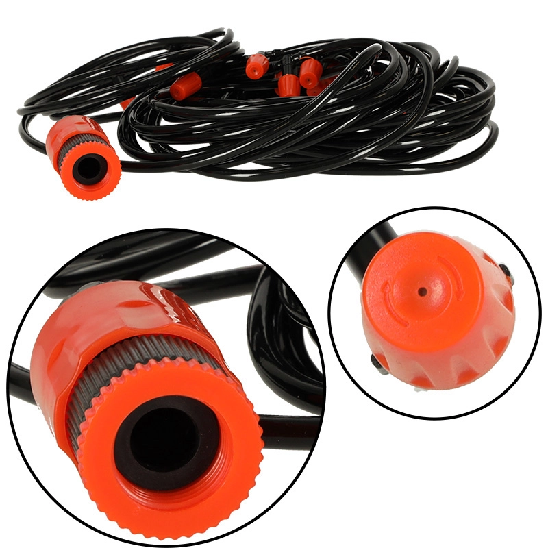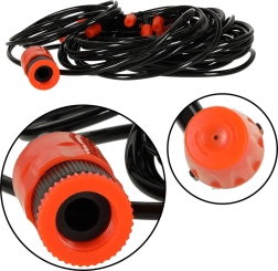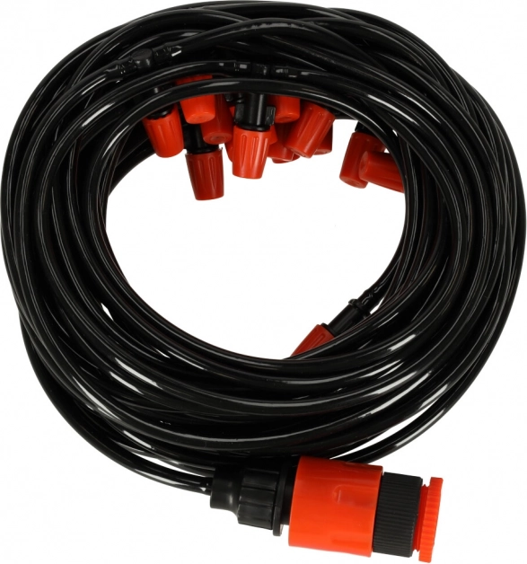 El práctico set de nebulización transformará tu jardín, terraza o invernadero en un lugar agradablemente fresco. La fina niebla de agua mejora el clima durante los días calurosos, reduce el sobrecalentamiento y aumenta el confort para el descanso y el juego de los niños. El sistema también sirve como riego eficiente: distribuye el agua de manera uniforme a las plantas sin desperdicio.
