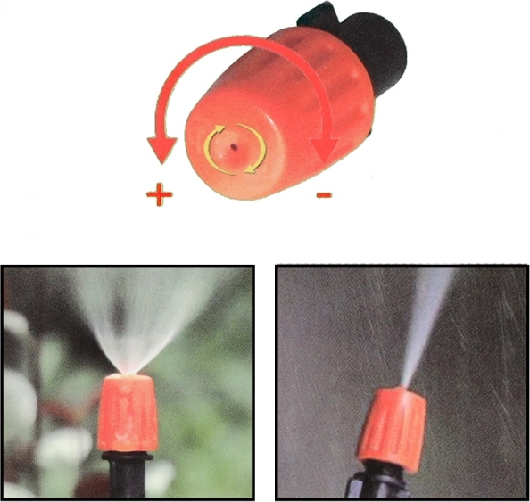 Cada boquilla permite regular la intensidad de pulverización, de modo que puedes adaptar fácilmente el caudal a diferentes zonas y necesidades.