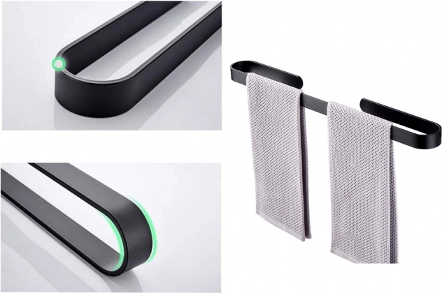 Práctico y estilizado toallero de 30 cm de longitud, ideal para el uso cotidiano. El acabado negro y las líneas limpias realzan su aspecto moderno, mientras que el cuerpo de aluminio garantiza ligereza y alta durabilidad frente a la humedad.