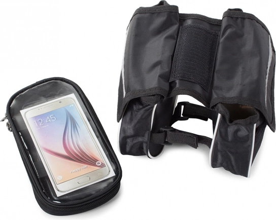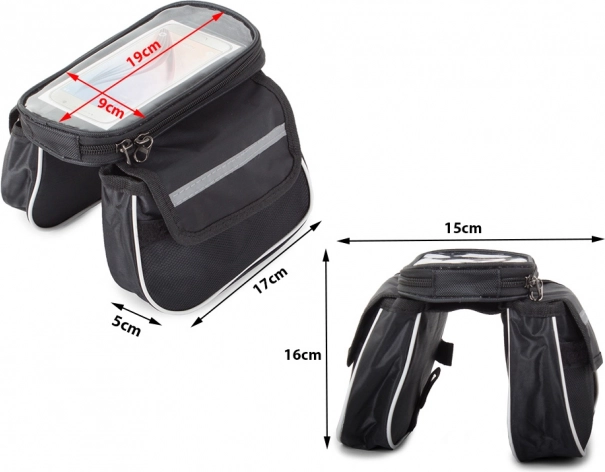 Esta bolsa de cuadro para bicicleta está fabricada con material resistente, lo que garantiza una larga vida útil incluso con un uso exigente. El uso sin problemas del teléfono móvil durante la conducción está asegurado gracias a la parte frontal transparente.