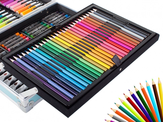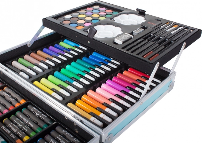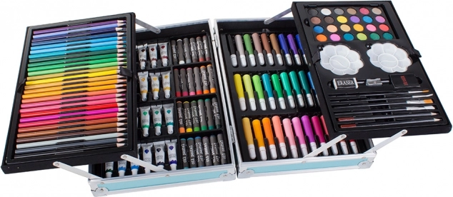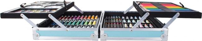 El set de arte contiene diversos accesorios que están ordenados claramente en compartimentos especiales. Gracias al diseño elegante del maletín puedes tener tus materiales artísticos siempre a mano.
