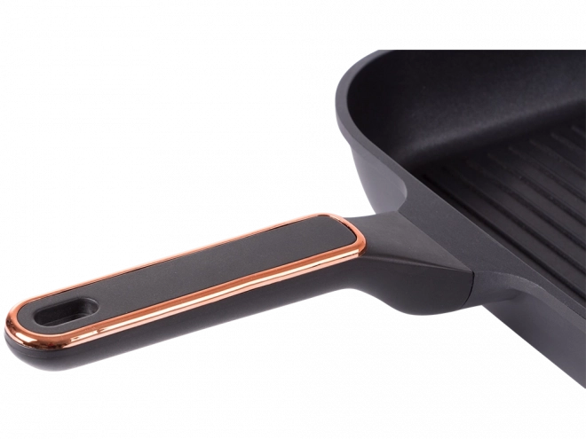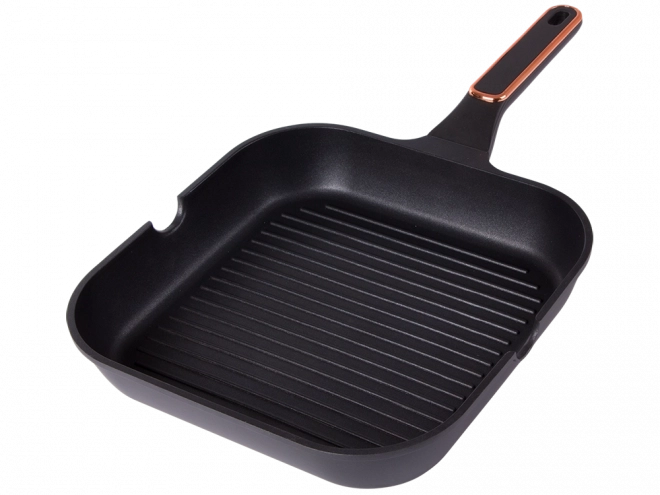Resistente parrilla de 28 cm de aluminio fundido a presión con superficie antiadherente para cocinar y limpiar fácilmente. Apta para inducción, gas, vitrocerámica y electricidad. La superficie acanalada crea un efecto de parrilla, los picos vertedores dobles facilitan el vaciado y el mango ergonómico garantiza un agarre seguro.