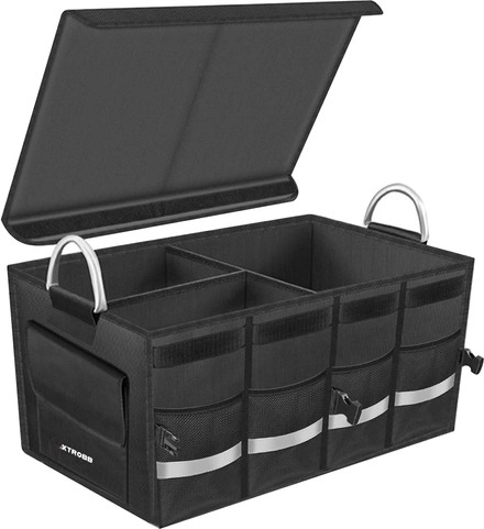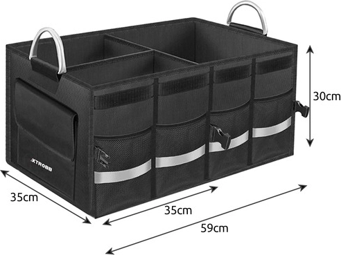 El gran organizador reforzado para maletero XTROBB ayuda a mantener la carga segura en su sitio y tener todo a mano. El compartimento principal puede dividirse en hasta tres partes, por lo que las herramientas, el cuidado del automóvil, los cables y los pequeños objetos permanecen ordenados y no se desplazan durante la conducción. La tapa con velcro protege el contenido del polvo y mantiene un aspecto limpio del maletero.
