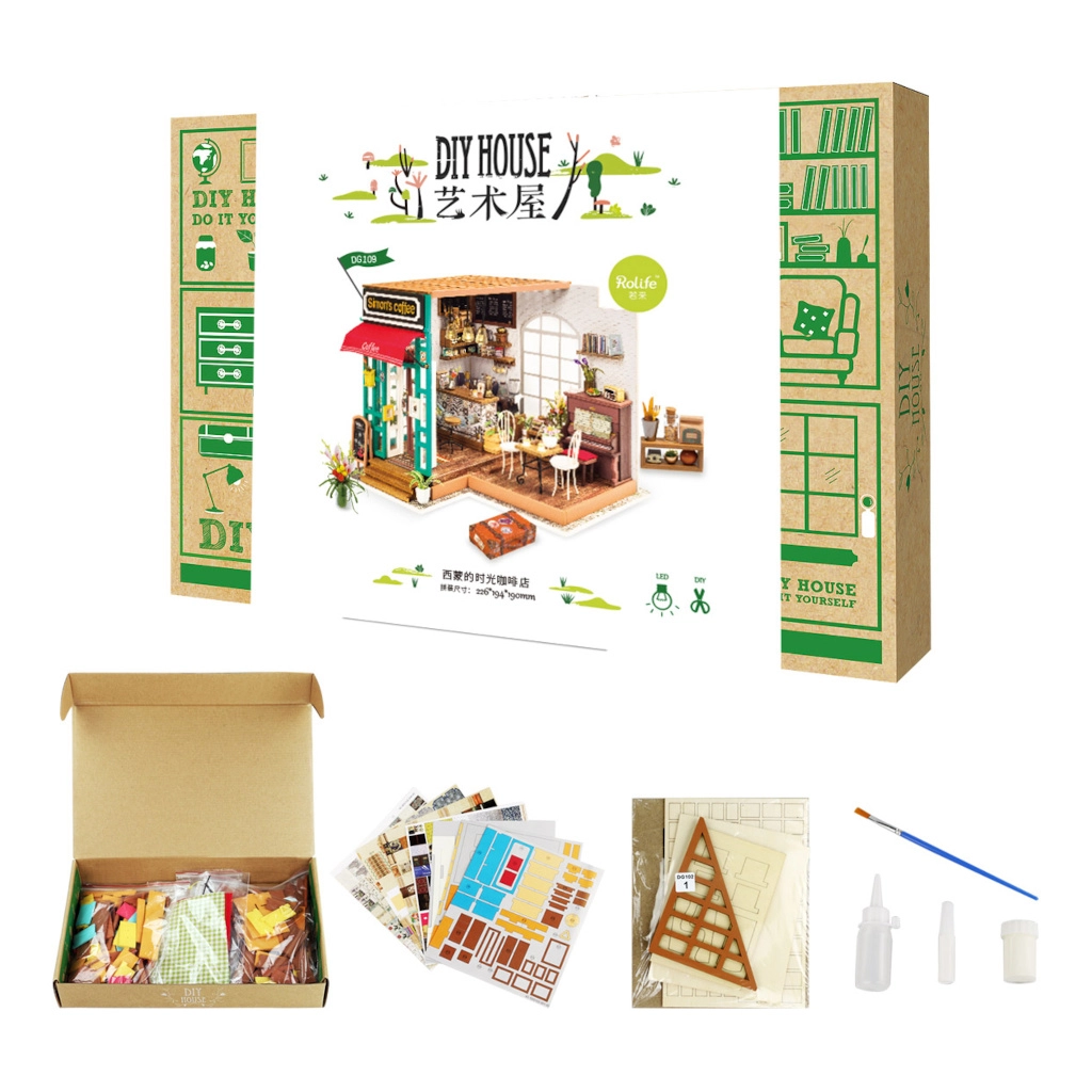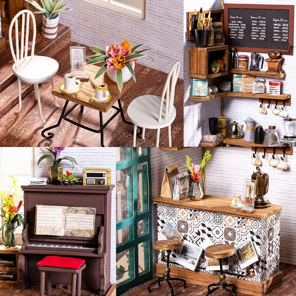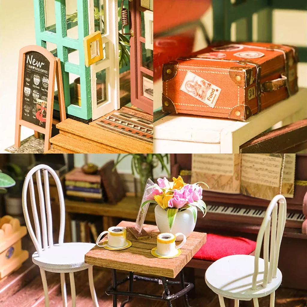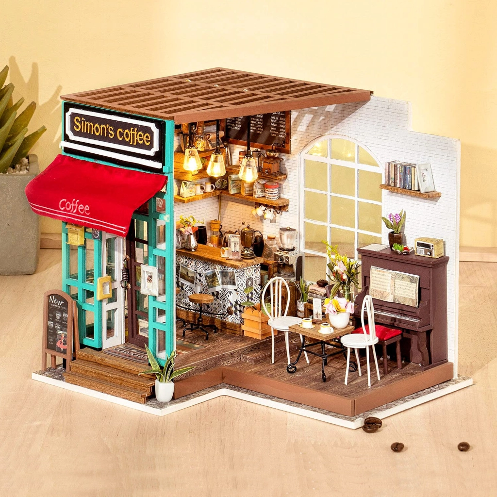 Descubre el mundo de las maquetas creativas, donde cada pieza cobra vida con tus propias manos. La mini cafetería destaca por su completo equipamiento, texturas auténticas y luz LED que crea una atmósfera agradable. Ideal como regalo para mentes creativas y como una decoración con estilo para el hogar.