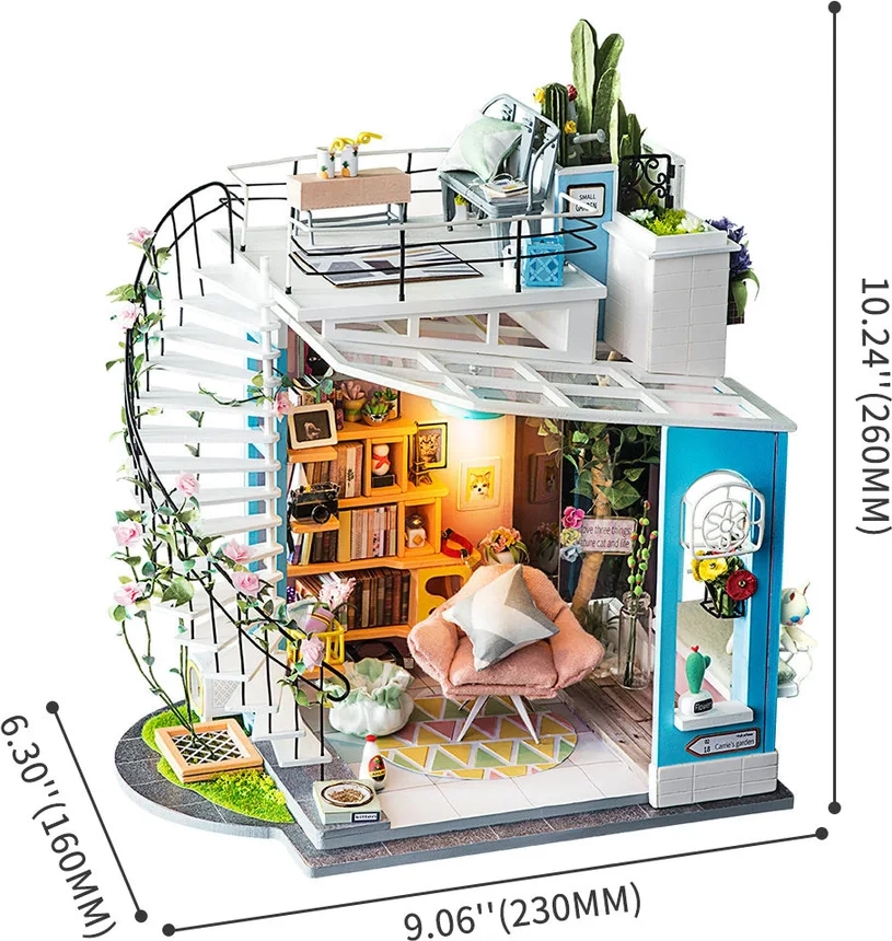 Sumérgete en el mundo de las miniaturas detalladas con el kit de RoboTime, donde te esperan horas de creatividad con esta hermosa miniatura de una casita en el ático. Cada kit está equipado con iluminación LED que resalta los colores del modelo y crea un ambiente acogedor. El kit está destinado a manitas creativos y amantes del modelismo que valoran el trabajo preciso en cada detalle.