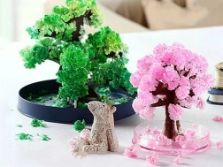 Es ideal como pequeño regalo, decoración creativa y sencillo experimento científico. El proceso es intuitivo y seguro, y el resultado, impactante y fotogénico. Suele haber variantes de color disponibles, para combinar varios arbolitos y crear un pequeño “jardín”.