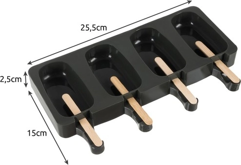 Las cuatro cámaras independientes permiten preparar distintos sabores a la vez: de yogur, frutales o tipo sorbete. Gracias a las aberturas para los palitos en el extremo del molde, el llenado y la colocación de los palitos es rápida y limpia. El paquete incluye 50 palitos de madera, para que puedas empezar enseguida y te duren mucho tiempo.
