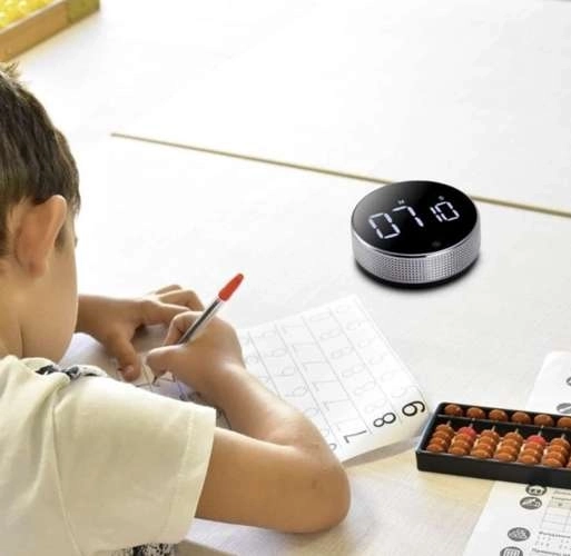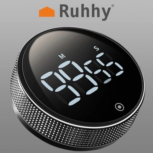Práctico temporizador digital RUHHY con gran pantalla LED, fijación magnética y función de cronómetro que facilita la cocina, el entrenamiento y los juegos. Ofrece volumen ajustable, cuenta atrás precisa hasta 99 min 55 s y un manejo sencillo con un solo toque.