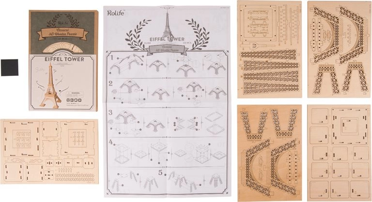 Sumérgete en el mundo del montaje y construye la Torre Eiffel en tu propia casa. Este singular modelo 3D de madera de la marca Robotime Rolife está hecho de contrachapado de tilo de alta calidad y garantiza horas de diversión.