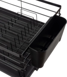 El escurreplatos Ruhhy, estiloso y práctico, en elegante color negro, es ideal para cocinas modernas de inspiración loft. La estructura de acero al carbono es robusta y resistente a la humedad y a los daños, mientras que los accesorios plásticos de PP y resina facilitan el mantenimiento y el uso diario.