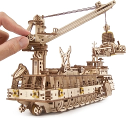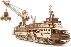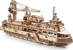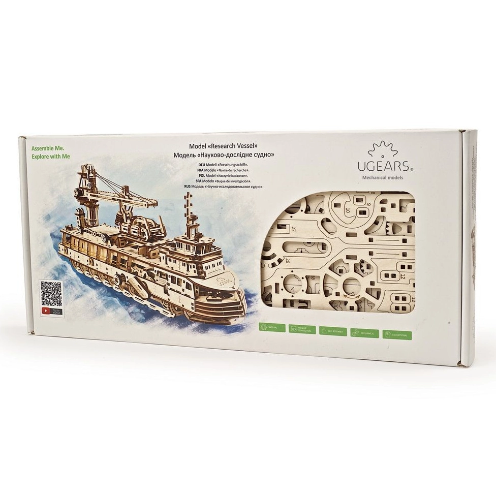 El modelo mecánico de barco de investigación oceanográfica de UGEARS es un preciso kit de madera que entusiasmará a creadores exigentes y coleccionistas. Gracias a sus 575 piezas cortadas con precisión y a su alta dificultad, disfrutarás de una experiencia de construcción intensa con un resultado que realmente cobra vida: las partes visibles del mecanismo te permiten observar el funcionamiento de la propulsión en tiempo real.