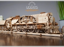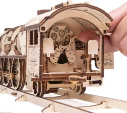 UGEARS V-Express es un excepcional kit de construcción de madera para entusiastas exigentes que combina la magia del ferrocarril clásico con mecánica ingeniosa. El “recubrimiento” abierto de la locomotora permite observar en acción el funcionamiento de engranajes, trenes de ruedas y mecanismo de biela-manivela. Gracias al motor de cuerda, el modelo realmente se pone en marcha y ofrece una experiencia de conducción realista, incluyendo punto muerto y marcha atrás.