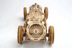 Entra en la era del nacimiento del automovilismo con el preciso modelo UGEARS U9 Grand Prix. El kit de contrachapado de alta calidad ofrece una experiencia auténtica de construcción y funcionamiento: dirección, marcha atrás, punto muerto y elementos móviles reales del motor V8. El modelo está diseñado para desplazarse por sí solo tras tensar el mecanismo de resorte y deleitar a cualquier amante de la técnica.