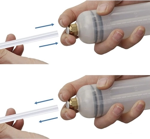 Incluye dos mangueras elásticas de 215 mm y 225 mm de longitud. Sus tapones desmontables permiten un manejo sencillo y amplían significativamente el alcance del extractor.