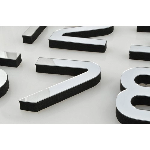 Las cubiertas plateadas brillantes de los números crean un moderno efecto 3D que destaca en cualquier pared y aporta luz al interior.