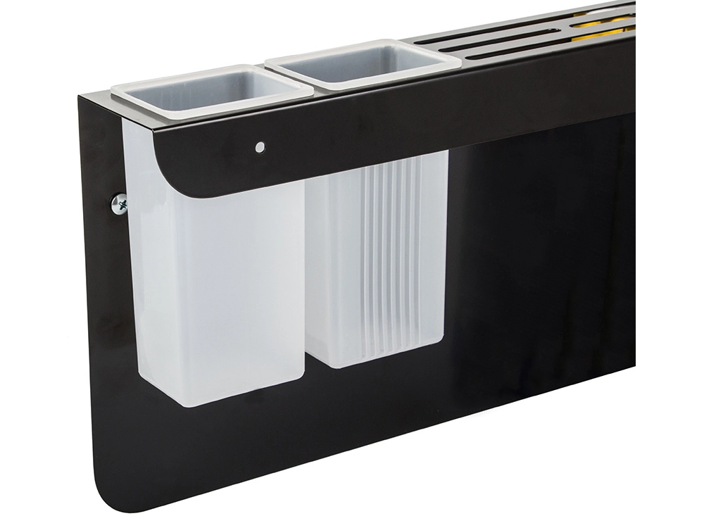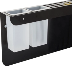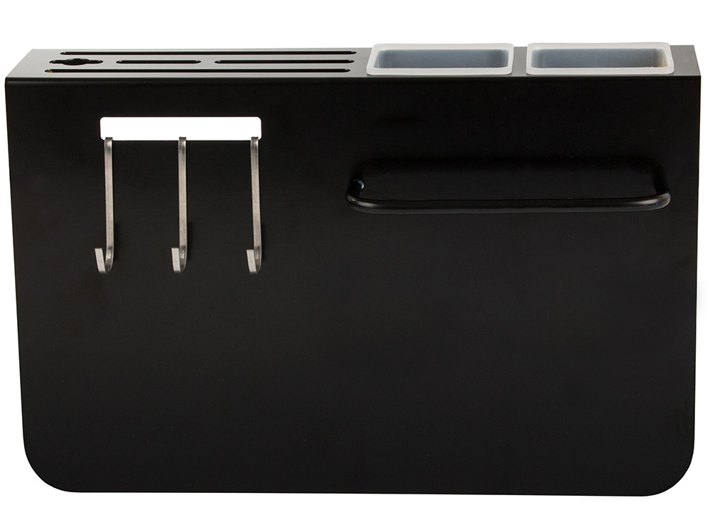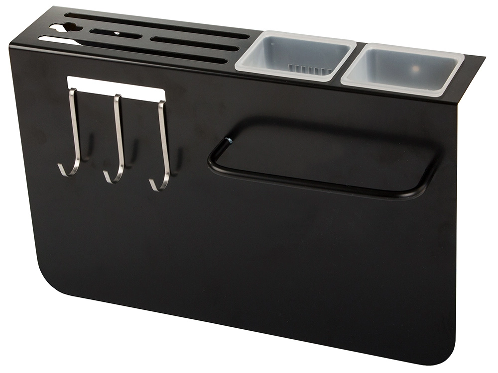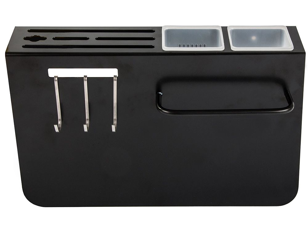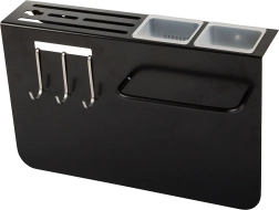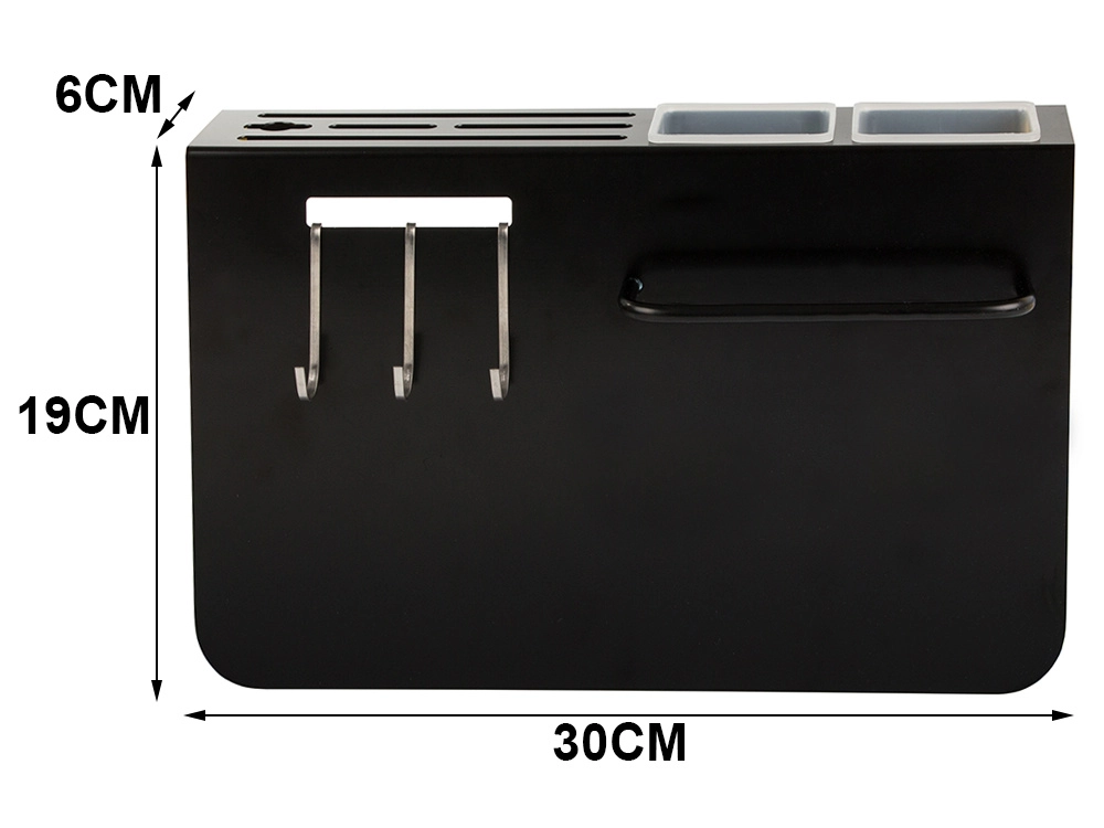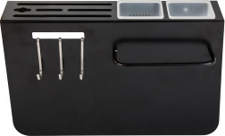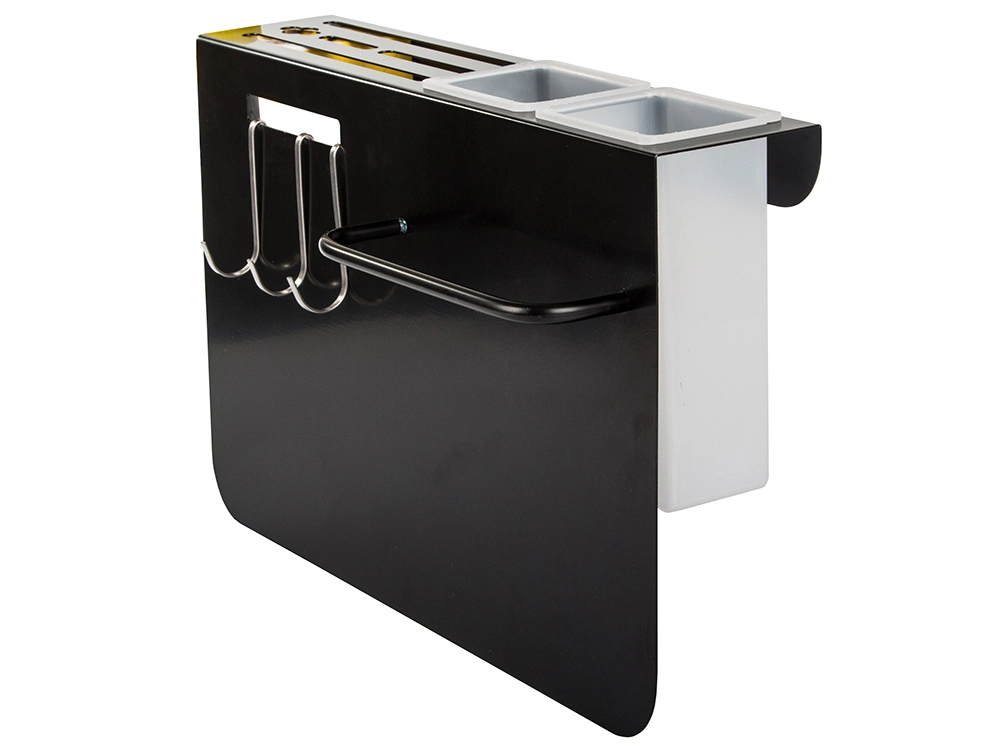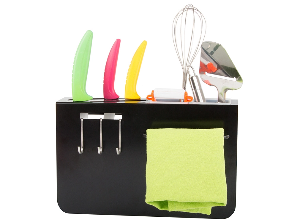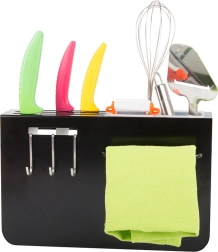 Tres ganchos y dos contenedores para organizar fácilmente cuchillos y utensilios de cocina.