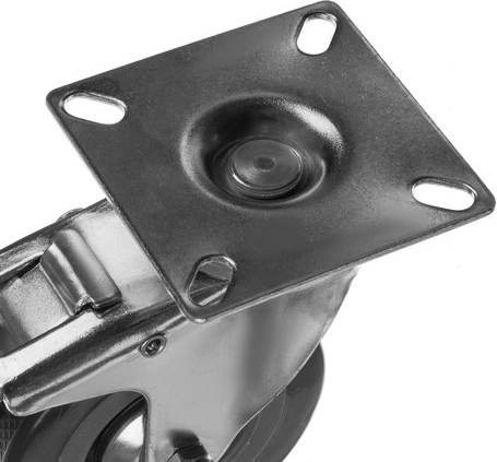 Todo el juego de ruedas industriales puede soportar hasta 220 kg. Gracias a las ruedas de goma, se trata de una solución silenciosa y duradera que también amortigua las vibraciones.