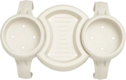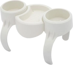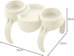 Un accesorio inteligente para momentos de relax en la bañera de hidromasaje: portavasos doble con bandeja central. Ofrece dos compartimentos circulares para vasos, latas o botellas y, en el centro, un lugar práctico para pequeños objetos: gafas, smartphone o snacks. La construcción resistente en material PP/ABS está preparada para el agua y el sol.