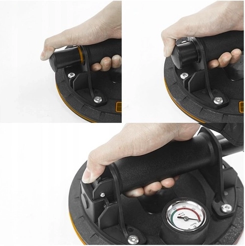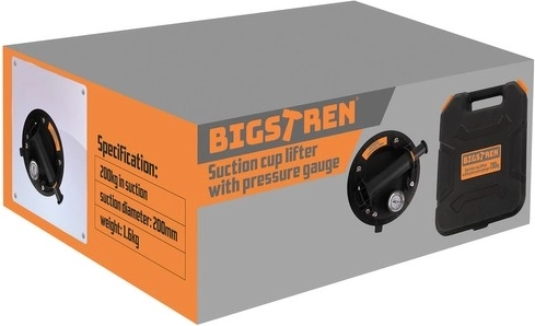 Con la ventosa industrial BIGSTREN puede manipular fácil y seguramente objetos pesados y delicados gracias al mecanismo de vacío con manómetro. Esta ventosa soporta hasta 200 kg, lo que la hace adecuada para un uso amplio tanto en el hogar como en el ámbito comercial.