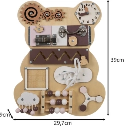 El tablero sensorial de madera de Kruzzel está perfectamente diseñado para apoyar el desarrollo infantil. Su forma de oso y la multitud de elementos interactivos ofrecen muchas horas de diversión y aprendizaje. Este tablero no solo es divertido, sino también educativo, lo que lo convierte en una herramienta imprescindible para el desarrollo de los niños.
