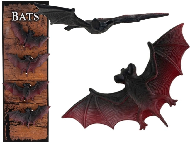 Crea una atmósfera de Halloween espeluznante en un instante. Este set de 4 murciélagos realistas de plástico/goma resistente es ideal para decorar la casa, el jardín y las fiestas. Cuélgalos fácilmente de una rama, telaraña o estante para lograr decoraciones impactantes con alas negro‑rojas llamativas.