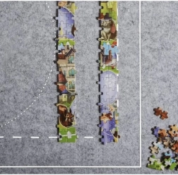 La esterilla incluye campos impresos para seis tamaños distintos de puzzles, lo que facilita el montaje de cualquier tamaño de piezas.