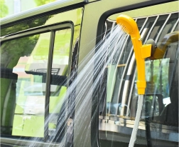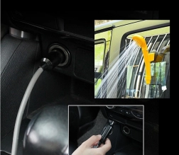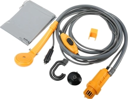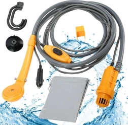 Esta ducha de viaje portátil se alimenta de la toma estándar de 12 V del coche, por lo que puedes usarla fácilmente en el coche, autocaravana, barco o en un terreno con acceso a batería. Gracias al cable de alimentación largo y a la manguera, la manipulación es cómoda y el lavado, rápido.