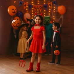 Un disfraz de diablito con estilo en un rojo intenso transforma a cualquier niño o adulto al instante. Gracias a los materiales suaves y a los cierres elásticos, los accesorios se colocan fácilmente y se mantienen cómodos durante toda la diversión. El set es ideal para juegos de rol en casa, festivales escolares, sesiones de fotos y fiestas.
