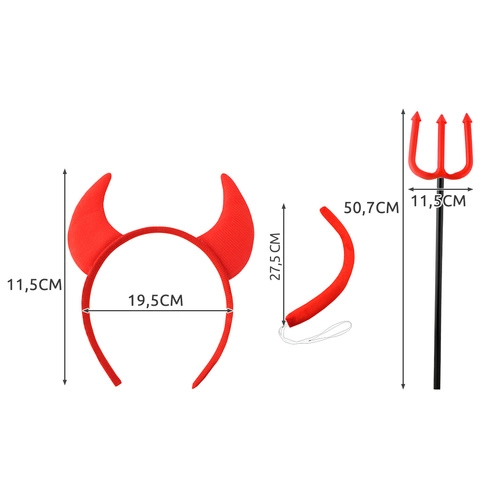 El tridente de plástico ligero y los cuernos en diadema completan el disfraz y lucen genial en las fotos.