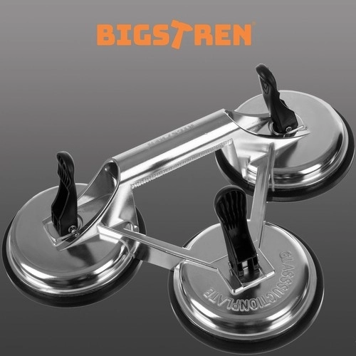 Esta robusta ventosa triple de aluminio BIGSTREN es la elección ideal para montadores, cristaleros y aficionados al bricolaje. Sus tres grandes ventosas de goma de 120 mm con presión mecánica por palanca proporcionan una sujeción fuerte y estable en superficies lisas y no porosas, como vidrio, metal, azulejos esmaltados o madera pintada.