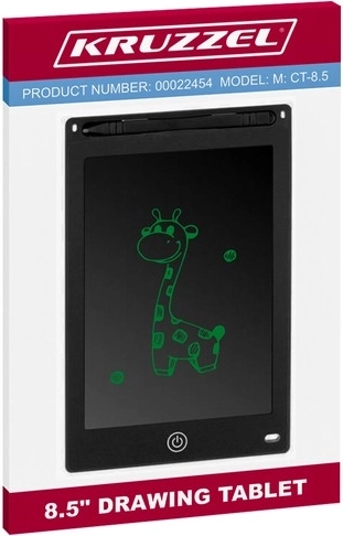 La tableta de dibujo Kruzzel cuenta con una pantalla de 8,5" que responde al tacto con cualquier objeto, incluso con la uña. Sobre la pantalla hay un soporte para el lápiz, que permite guardarlo cómodamente.