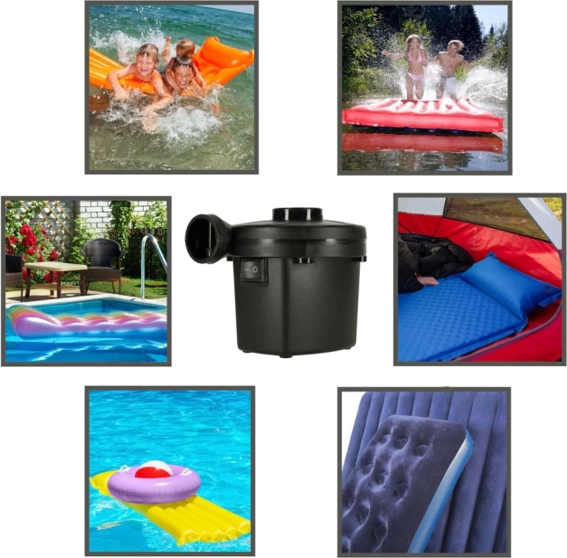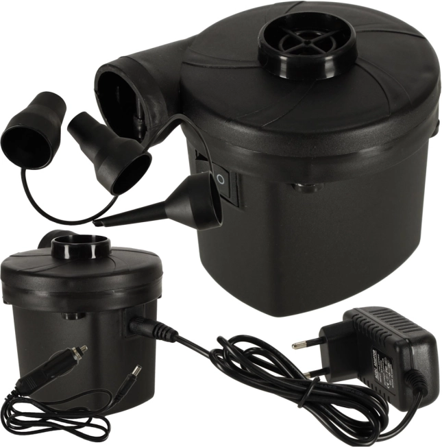 Bomba eléctrica compacta y potente ideal para inflar y desinflar colchones rápidamente, tanto en casa como de viaje. El compañero perfecto para acampar y vacaciones con comodidad.