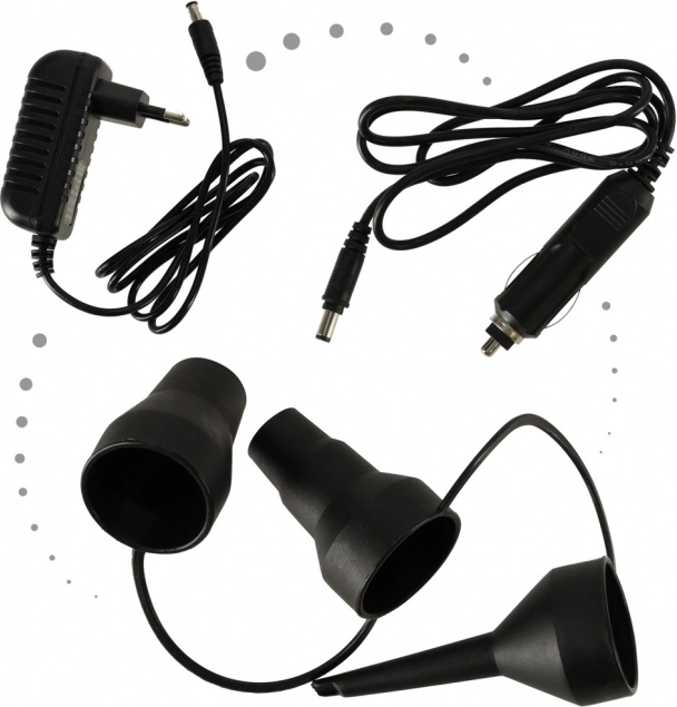 - Alimentación 12 V o 240 V: Versátil, desde enchufe doméstico o toma del automóvil.