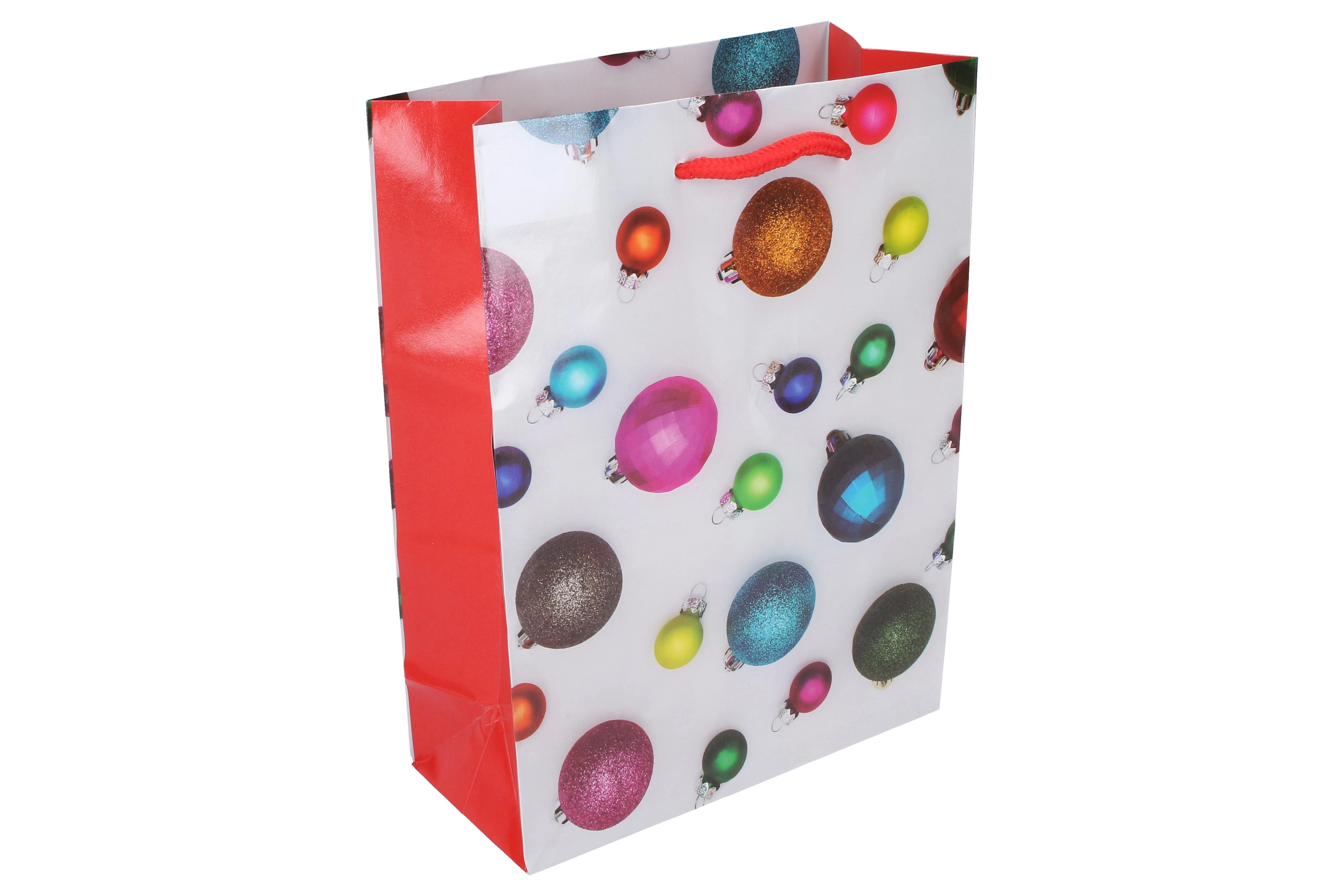 La elegante bolsa de regalo navideña en tamaño L 32x44x11 cm es la solución ideal para envolver tus regalos de Navidad. Disponible en cuatro colores diferentes, esta bolsa no solo protege tus regalos, sino que también les aporta un toque de lujo y alegría gracias a su diseño festivo.